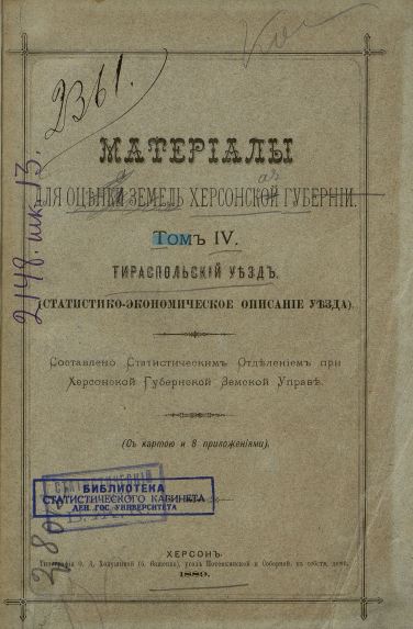Материалы для оценки земель Херсонской губернии